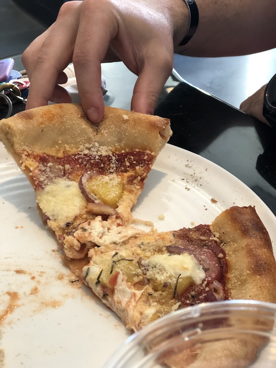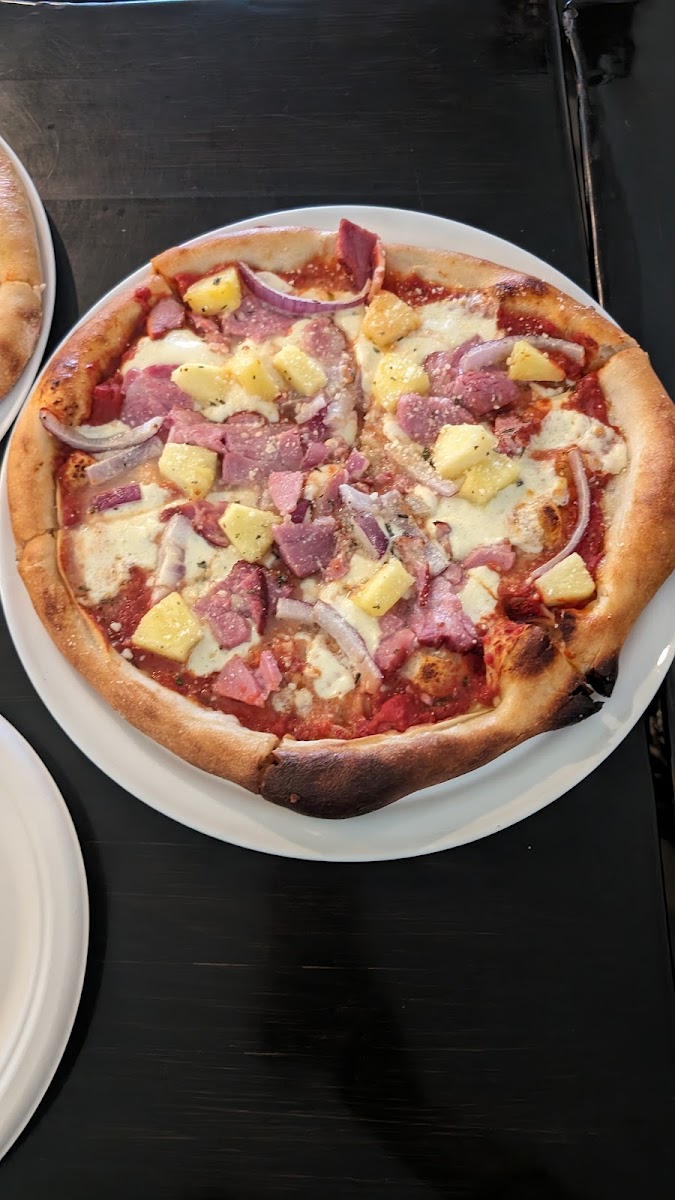 Loved this place- their Lobster bisque soup was perfect- with good number of lobster pieces! The Veggie Park was the most unique pizza we’ve had- it was delicious- with the perfect balance and combination of the sauces- white and pesto, yummiest blend of sun-dried tomatoes and all other veggies- in a yum veggie park ! My son loved his Aloha pizza too. The staff was good and the place was efficient! (Forgot to take pics, here’s one that my son took of his pizza- the Aloha Pizza) - Party of 4 at table 22.