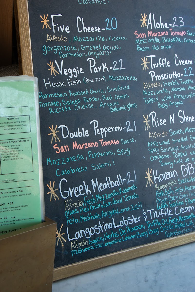 Alongside their signature pies like the Lobster Langostino & Truffle Cream or Veggie Park, you’ll find options that balance indulgence and freshness. Whether you’re craving a cheesy garlic bread side to share or a slice of something vibrant and vegetable-forward, the menu caters to a variety of tastes without overwhelming choices.
